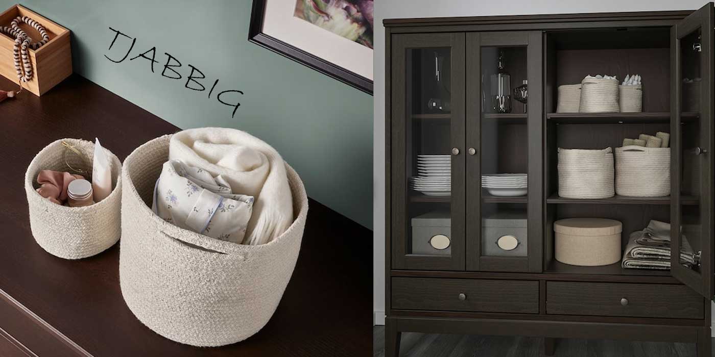 سبد بافتنی ایکیا مدل IKEA TJABBIG یک سبد ذخیره سازی تزیینی و محکم می باشد که برای وسایلی که اغلب از آنها استفاده می کنید و می خواهید در دسترستان باشد. برای مثال چیزهای سرگرمی، کنترلرهای بازی یا لوازم جانبی لباس و غیره بسیار مناسب است. این سبد بافتنی شده ذخیره سازی را برای شما راحت می کند. برای نظافت آن سعی کنید با جاروبرقی تمیز کنید یا از غلتک پرزدار استفاده کنید و حتی الامکان از سفید کننده و خشکشویی استفاده نکنید.