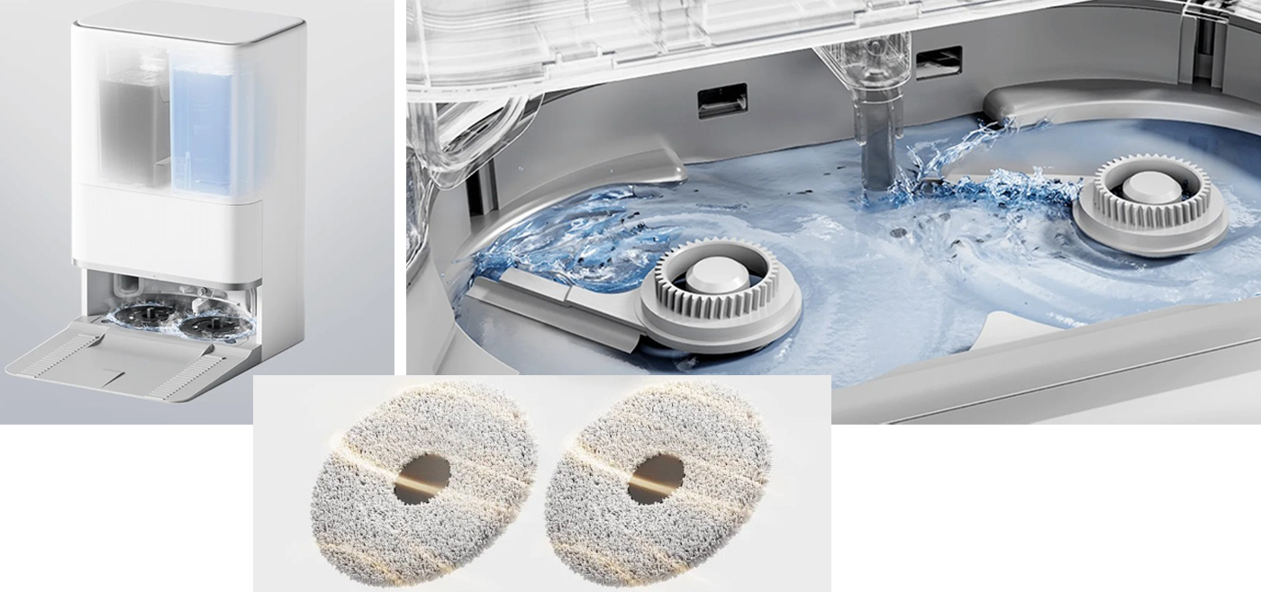 شستشوی پدهای تی با آب گرم تا دمای 80 درجه سانتیگراد، لکههای سرسخت را به سرعت از بین میبرد و در کنار آن، چرخش سریع و سایش، تمیز کردن کارآمدتر تی را تضمین میکند. پس از تمیز کردن، پدهای تی به لطف خشک شدن با هوای گرم، در عرض 2 ساعت خشک میشوند و نیاز به شستشوی دستی یا خشک شدن در آفتاب را کاهش میدهند. مخزن بزرگ آب تمیز 4 لیتری، نیاز به پر کردن مکرر مخزن را کاهش میدهد و آن را برای تمیز کردن خانههای بزرگ ایدهآل میکند.