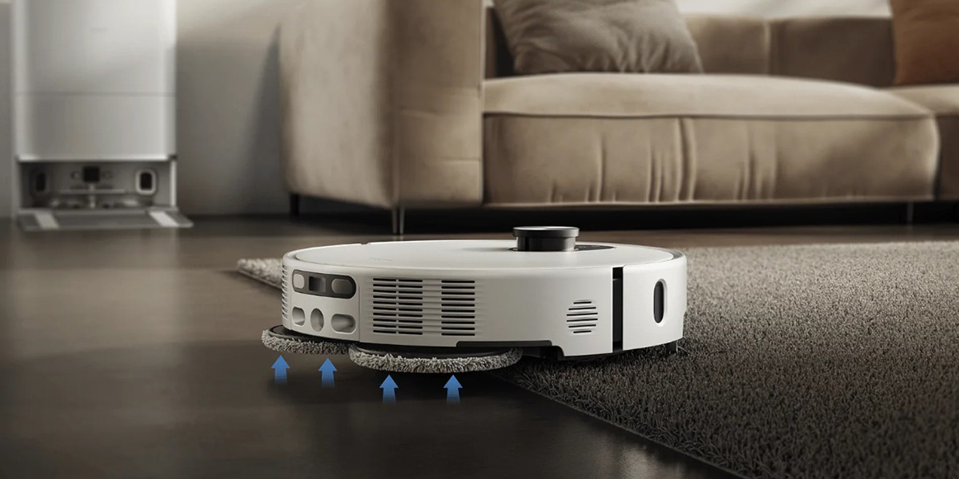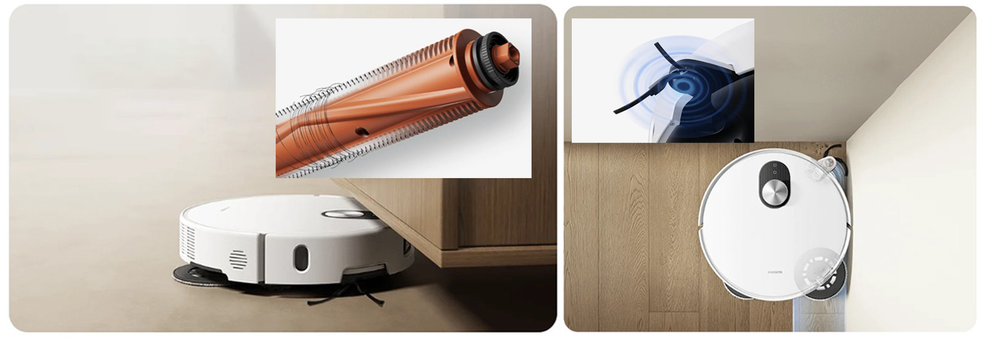 برس و پد تی هوشمند جمعشونده کناری به طور خودکار باز میشوند و گرد و غبار را در امتداد دیوارها و گوشهها با دقت میلیمتری تمیز میکنند. در ترکیب با مخزن آب جداگانه جاروبرقی رباتیک و کنترل دقیق خروجی آب، کفها درخشان و تمیز باقی میمانند.