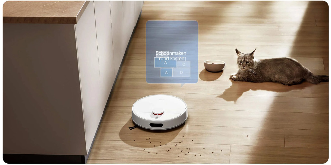 از تمیز کردن هدفمند اطراف مبلمان پشتیبانی میکند و به راحتی می توانید خردهها و بقایای مواد غذایی را فوراً پاک کنید. در برنامه Xiaomi Home، مناطقی مانند میز ناهارخوری یا مبل را تنظیم کنید تا به سرعت بقایای غذا، فضولات پراکنده گربه، غذای ریخته شده سگ و موارد دیگر را پاک کند.