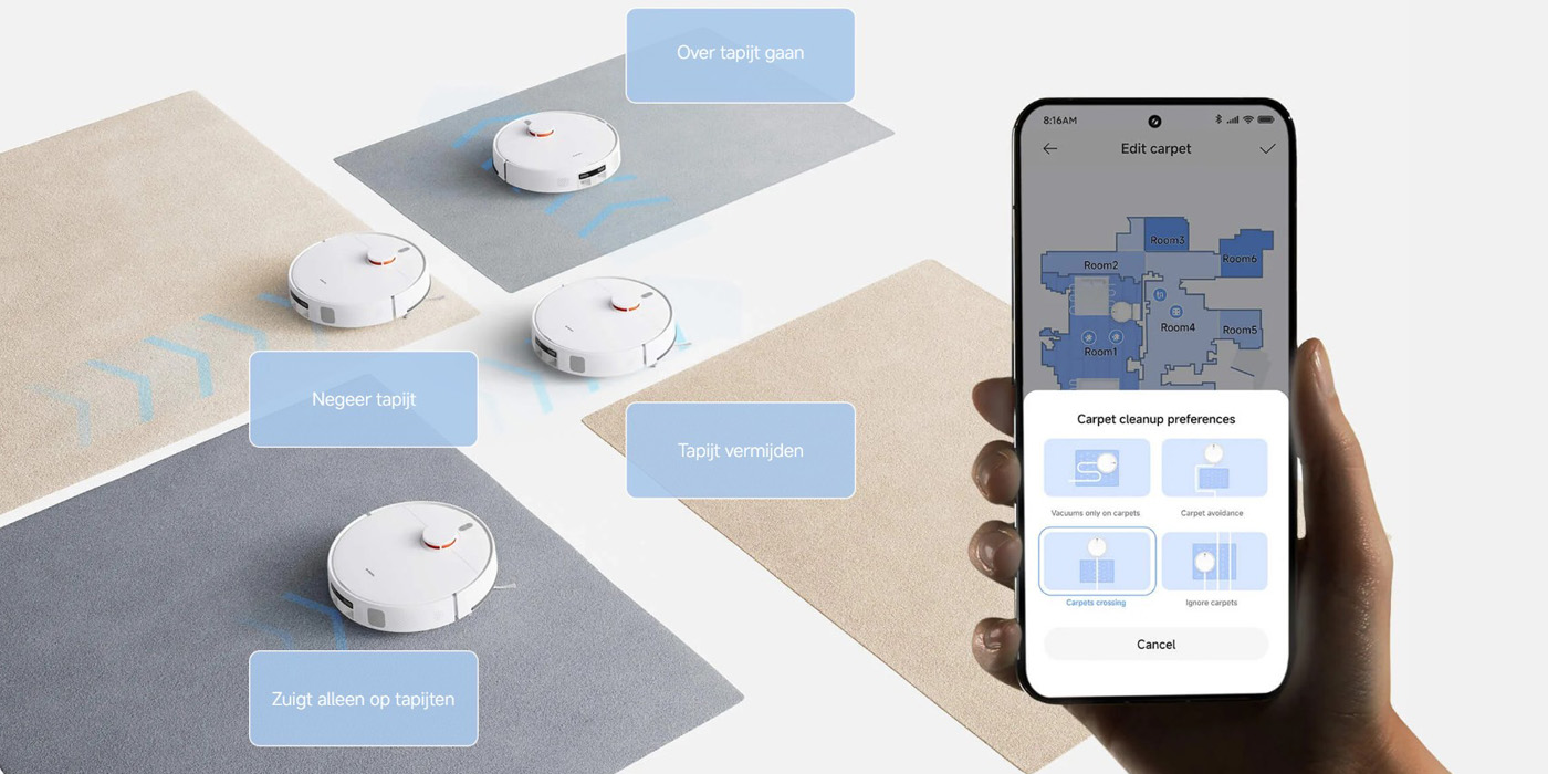 برای تمیز کردن فرش این جارو رباتیک به صورت دو مرحلهای با مکش قدرتمند گرد و غبار را تمیز می کند. تنظیمات تمیز کردن خود را در برنامه Xiaomi Home انتخاب کنید و تنظیمات را برای هر فرش مشخص کنید تا جارو کردن بدون نگرانی انجام شود.